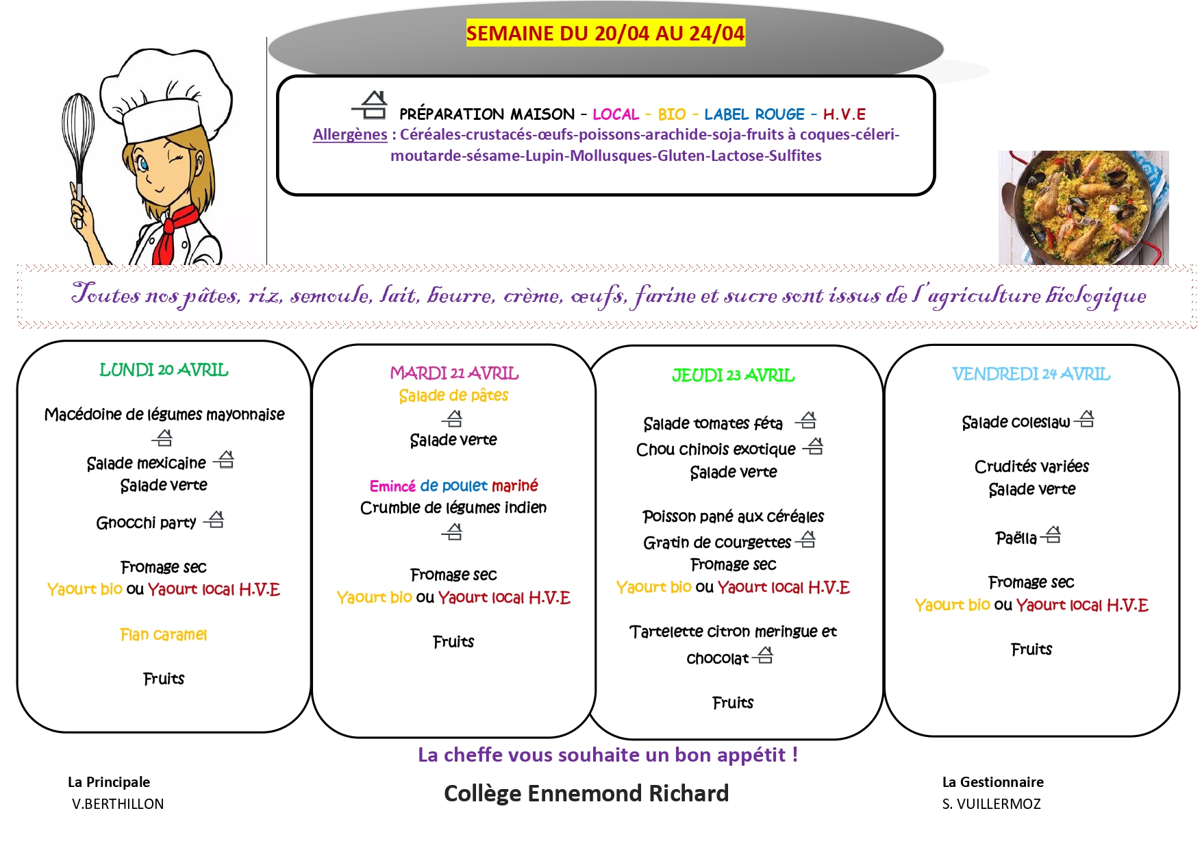 MENU DU 20/04 au 24/04