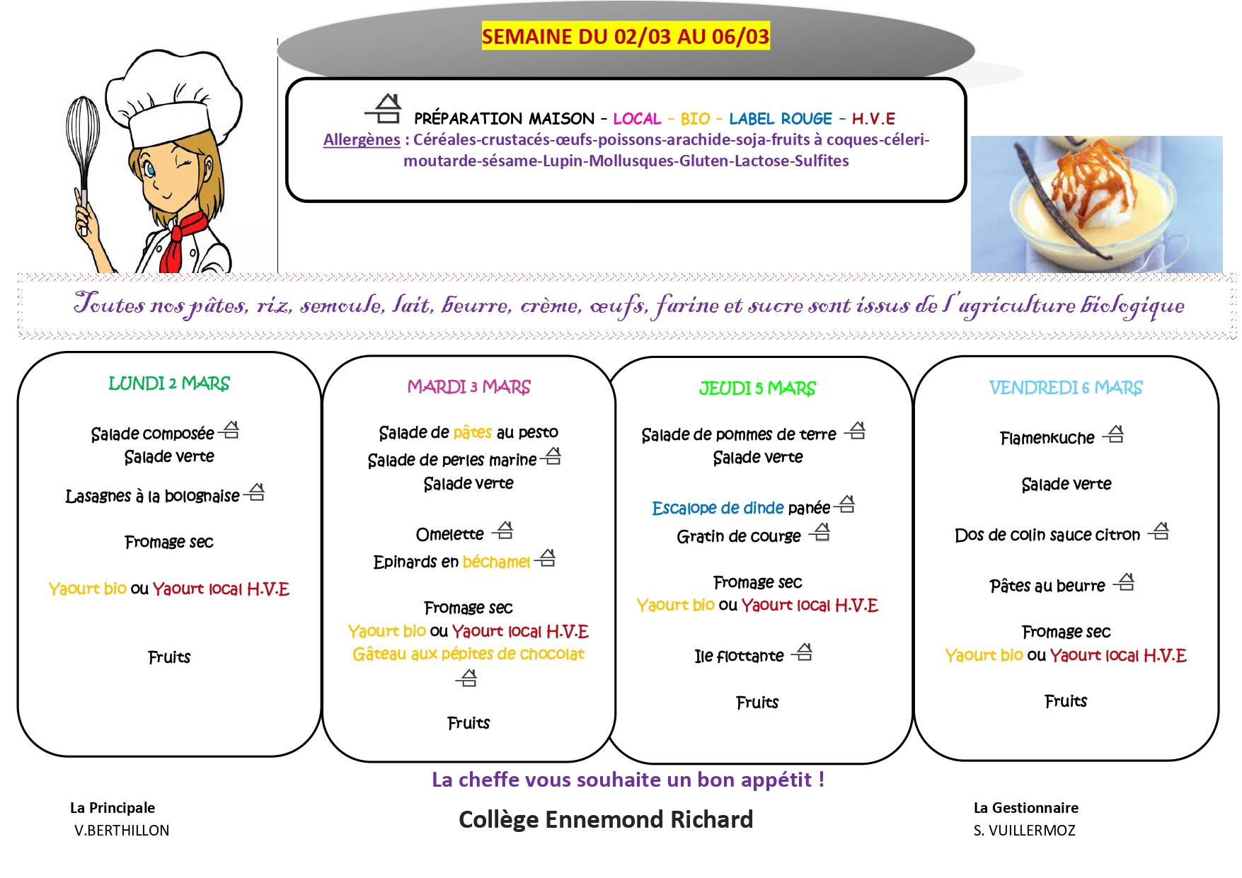 MENU DU 02/03 au 06/03/2026
