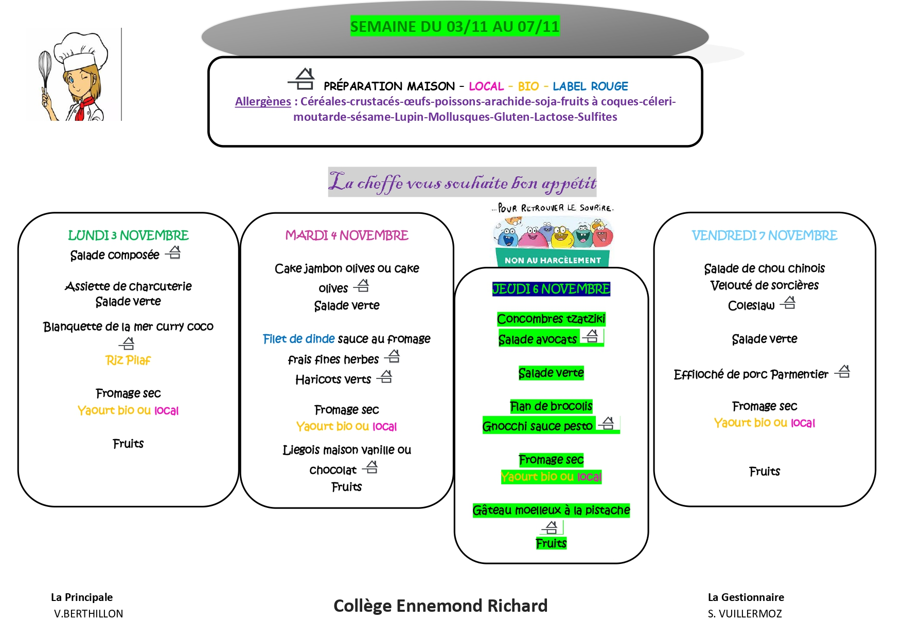 Pour toute question, vous pouvez joindre le service d’intendance du collège.