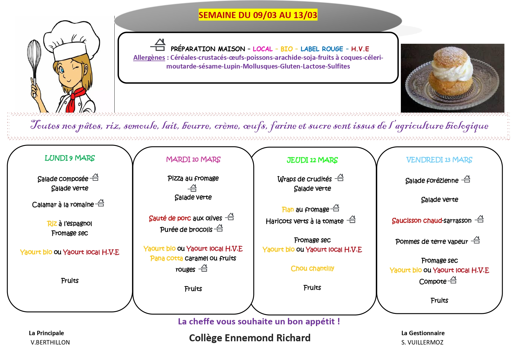 MENU DU 09/03 AU 13/03